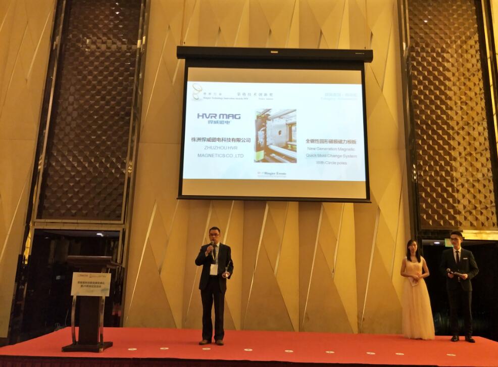 悍威磁電研發(fā)生產(chǎn)的磁力快速換模系統(tǒng),榮獲2018塑料行業(yè)榮格技術(shù)創(chuàng)新獎!在此次頒獎盛典上悍威磁電向業(yè)界介紹磁力快速換模系統(tǒng),助力塑料工業(yè)4.0!
